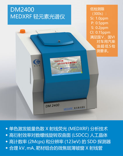 完全依據ASTM D 7220-12的DM2400S/Cl型MEDXRF微量測硫氯儀采用單色激發技術,能快速、準確、精確地分析燃料中的超低S。是實驗室和工廠進行燃料中的超低S分析的完美 ...更多